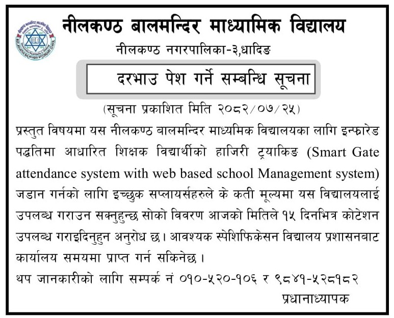 दरभाउ पेश गर्ने सम्बन्धी सूचना
