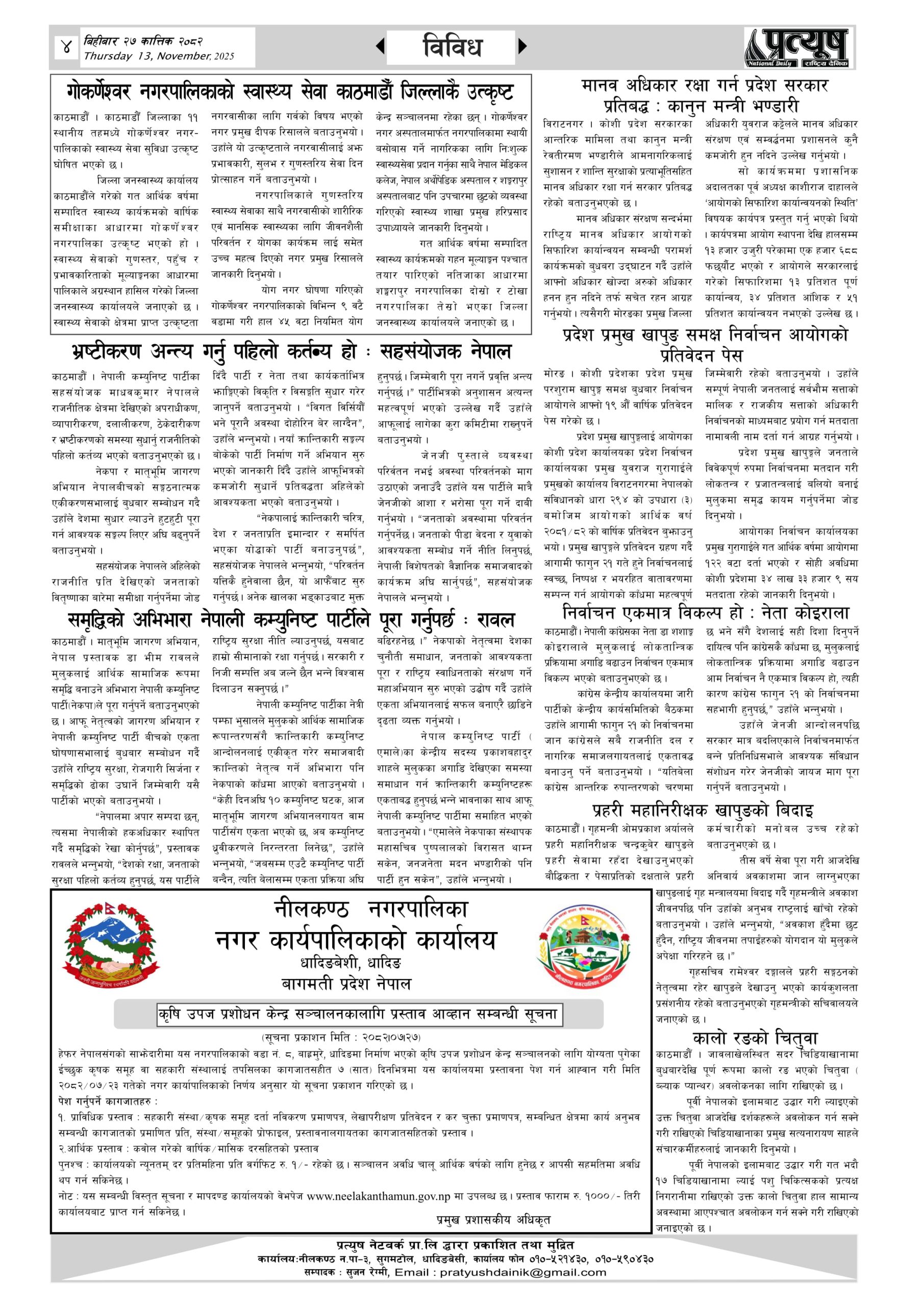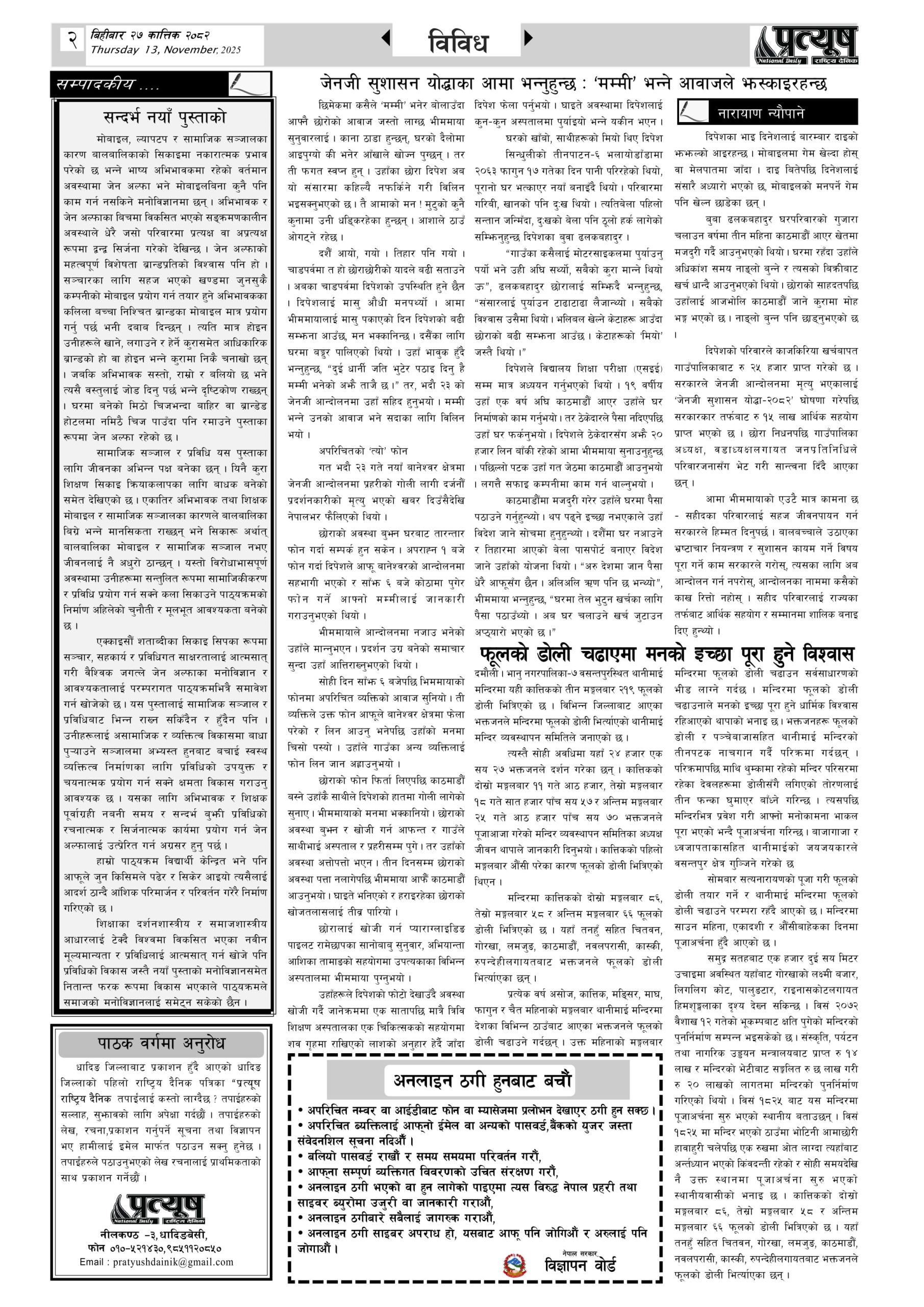• प्रत्यूष नेटवर्क प्रा.ली. द्धारा प्रकाशित