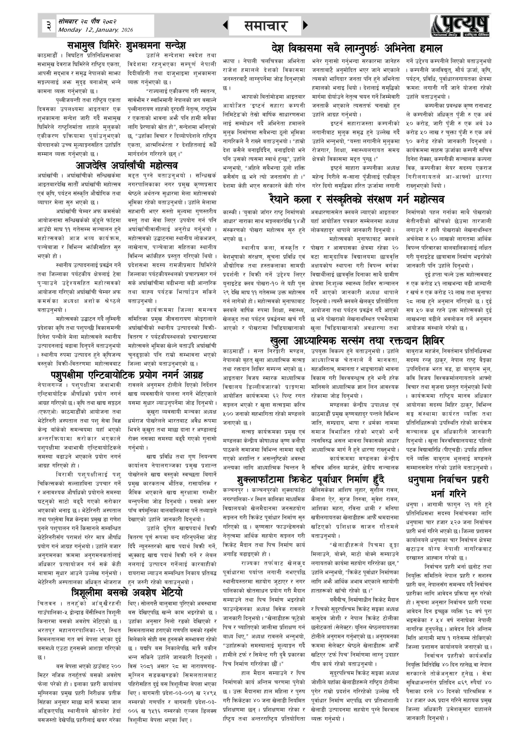 २०८२ पुस २६ गते शनिबार